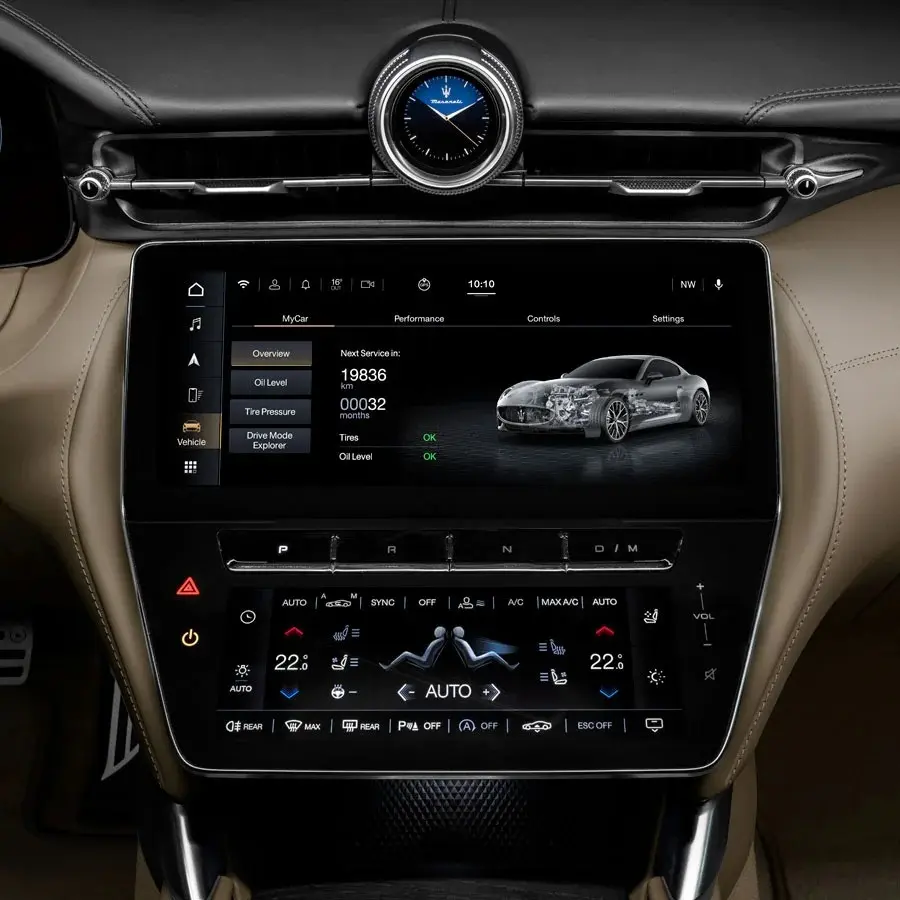 The ground-breaking V6 Nettuno engine, first debuted in the MC20 super sports car, is available in two versions: either the 483 hp for the Modena or the supercharged 542 hp Trofeo version, which come with 8-speed automatic AWD transmission.